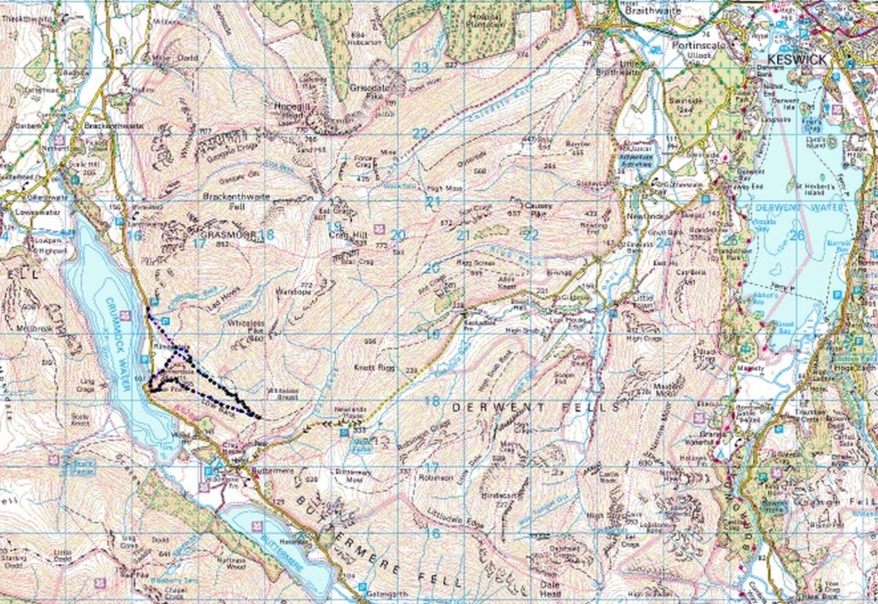 Yeah, I tried to locate the old path from the map but it’s not very obvious on the ground now. Steep loose scree sounded like fun! A nice wee hill all said – I did the Grasmoor hills the next day, and had a great day – I’ll blog that in a fortnight.