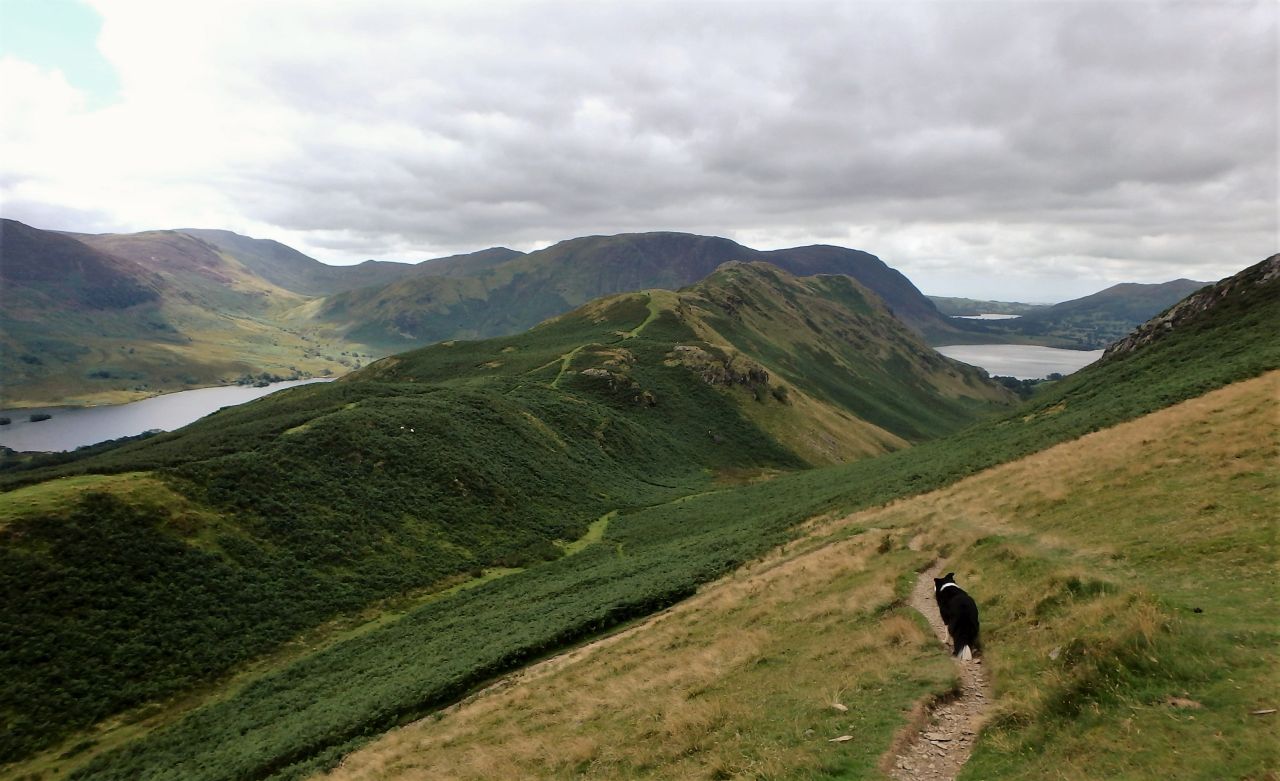 Having a Border Collie means a decent walk for the dog, every day.   Most of the time I’ll go with Chris, and we do a good number of hillwalking dog-walks together, but every now and then I’ll go off with ‘Mist’ for a solo day as on our Scottish trip in May (see posts #224 and #230).   August saw us back in the Lakes and on Day 1 our dog walk had been on Rannerdale Knotts (see post #234) – the views across to the Grasmoor Hills had been good enough to tempt me back there for a solo day, so that was the Day 2 dog walk sorted.