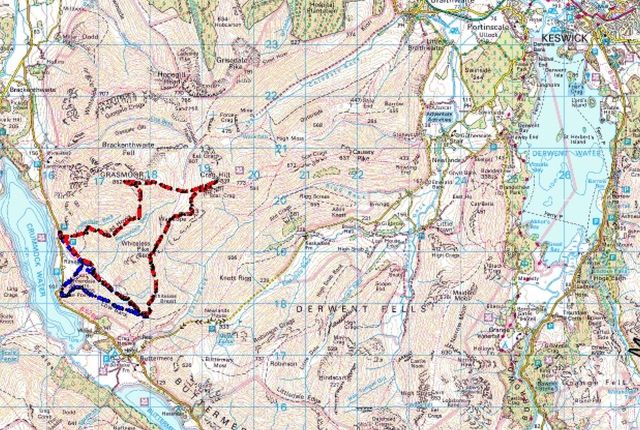 The route (in red – blue route is Rannerdale Knotts, post #234)