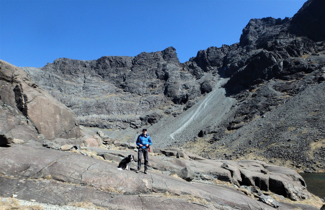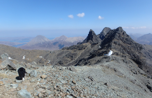 After the Lost Valley (which we now know wasn’t really lost) we went to Skye, where I had fun on a bit of the Cuillin Ridge, but my favourite day was up on Beinn Eighe – pity the Boss can’t keep up with me.