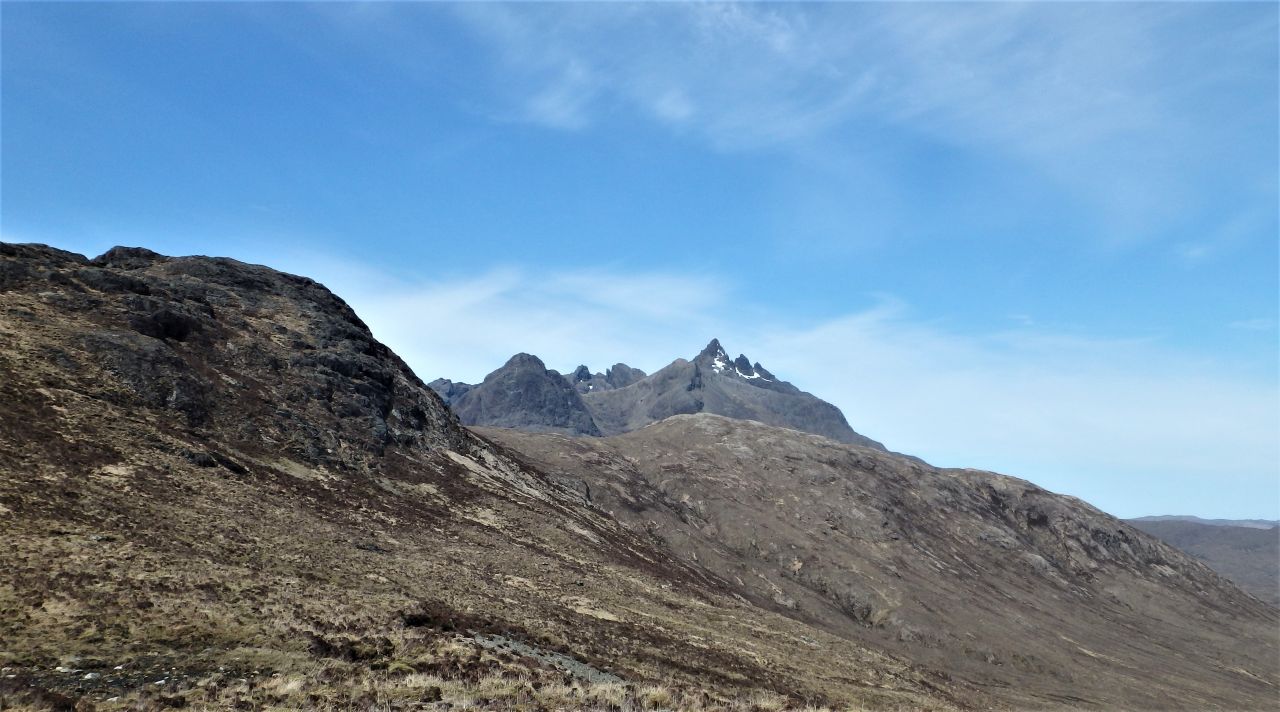 The view towards Harta Corrie, with the Cuillin Ridge beyond