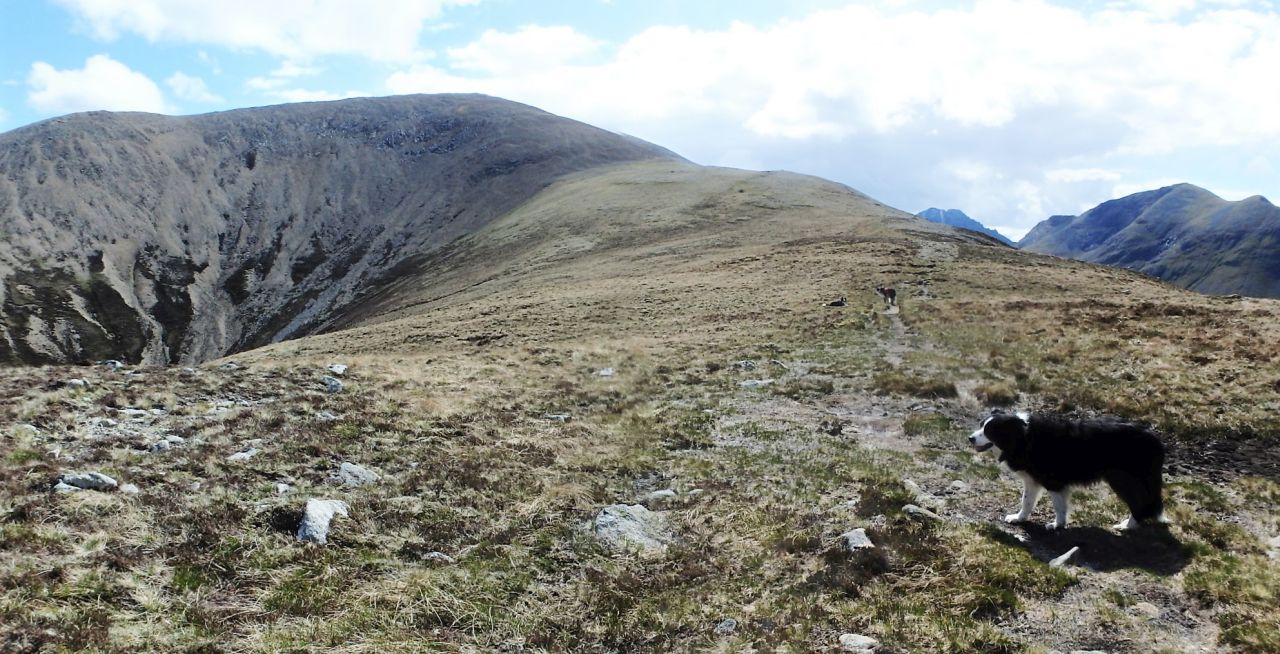 There you go, yet another example of the decisive military mind in action,though in our case I think the phrase was ‘bollocks to that’! We made a nice little round but I’ve got to confess that we didn’t do both Mheadhonach summits – there were several walkers on the main top, and we thought they might not appreciate a pack of Collies looking for a second lunch 😉
