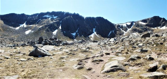 I had to retrace my steps back towards Lochan Buidhe, but once again I turned away from Cairn Lochan, this time avoiding it by taking a path on the west side of the mountain. I’ve no idea where the groups who had been on Ben Macdui disappeared to, but my return route was deserted with just two other hikers taking that option. It wasn’t quite deserted though.