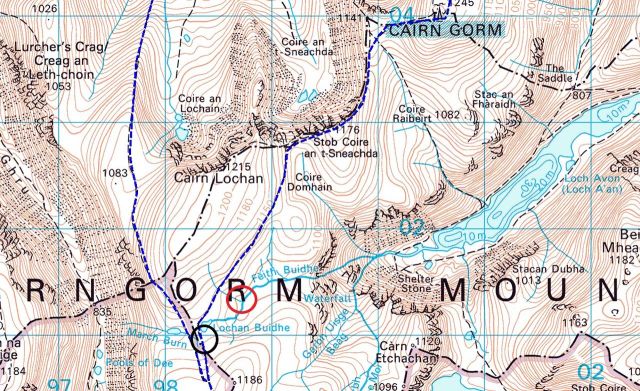 At the bealach (pass) below Stob Coire an t-Sneachda, I turned away from the Northern Corries of the Cairngorm Plateau to head directly for Ben Macdui. The route follows an easy path to the small lake of Lochan Buidhe (‘The Yellow Lake’), effectively cutting the corner and avoiding the ascent of Cairn Lochan, which my mate and I had toiled over with our heavy packs in 1969. Today’s route was also the route followed in what developed into the worst disaster in the history of UK mountaineering.