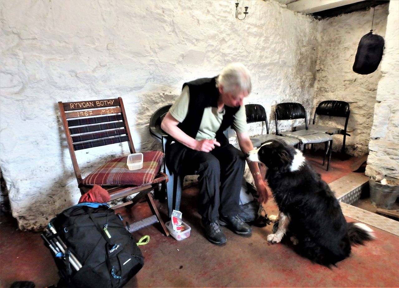 Inside the bothy, we found two hikers who were passing through the area and spending the night at Ryvoan. We weren’t staying overnight, but lunch seemed like a good idea and as usual Border Collie ‘Mist’ agreed in a flash. As with many bothies, there is plenty to read on the walls or in the ‘Hut Book’, but Ryvoan is best known for a poem written by A.M. Lawrence in the 1940’s – she was clearly deeply affected by the magnificent mountains of the Cairngorms. By tradition, a copy is pinned to the door.