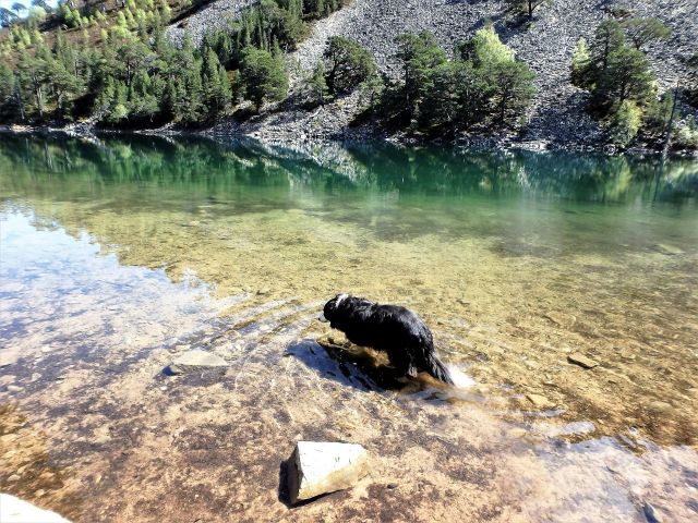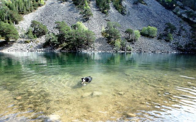 We didn’t have any heroic plans on this trip out, and carried on past ‘The Lodge’ towards Ryvoan Pass, passing an unusual seat by the side of the trail. A little further on we came to An Lochan Uaine which translates as ‘the Green Loch’, for reasons which become obvious from certain angles. The water has a green hue, which could be down to particles of minerals in the water, though another answer offered by the locals is that the colour comes from the fairy folk washing their clothes in it. Obvious really!