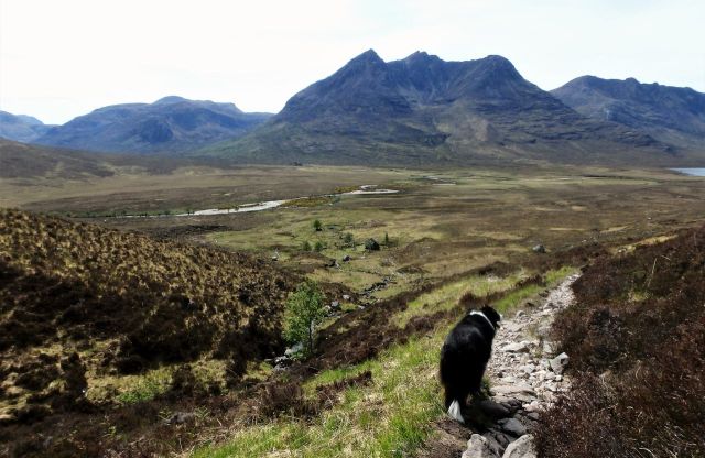 Shenavall is still owned by the Dundonnell estate but is in the care of the Mountain Bothies Association, who maintain the bothy for ‘free of charge’ use by hikers, climbers and mountaineers. Unfortunately, we were not staying overnight, but with a fire going the place would have been a cosy stopover. After taking a look round it was time for lunch and well-earned brew, with extra dog biscuits for ‘Mist’.