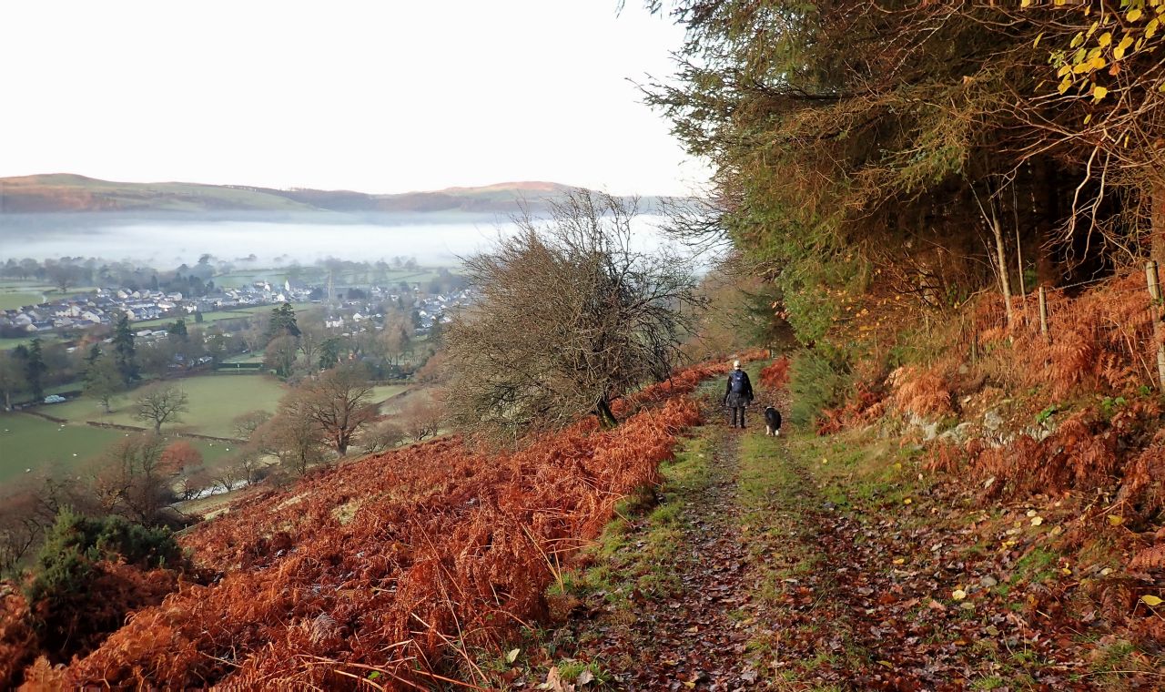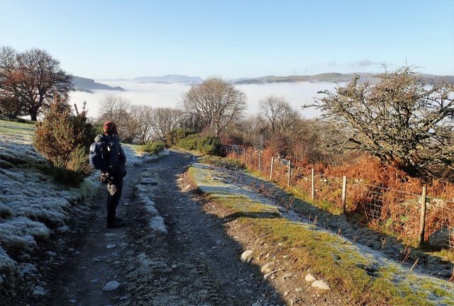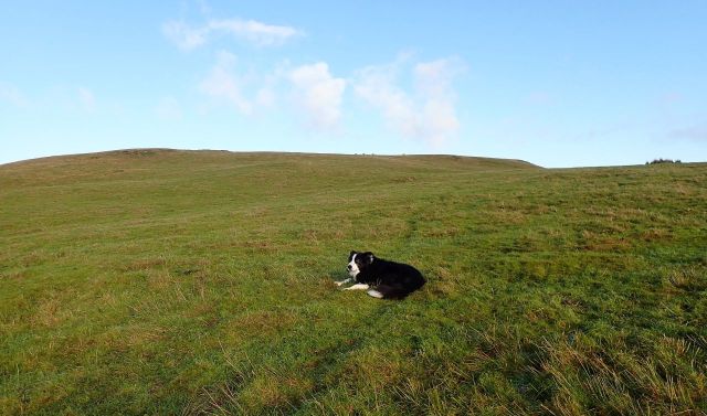 We had driven into thick mist (not talking about Collie ‘Mist’ this time as she’s far from being thick!) after passing through Ruthin, but I wasn’t dismayed – there was a strong ridge of high pressure across the area, and it was almost certain that we would leave the mist behind as we gained height. Sure enough, as we left the car behind in fog-bound Llandrillo, we popped out into clear conditions, with a great looking inversion below us in the valley of the Afon Dyfrdwy (River Dee).