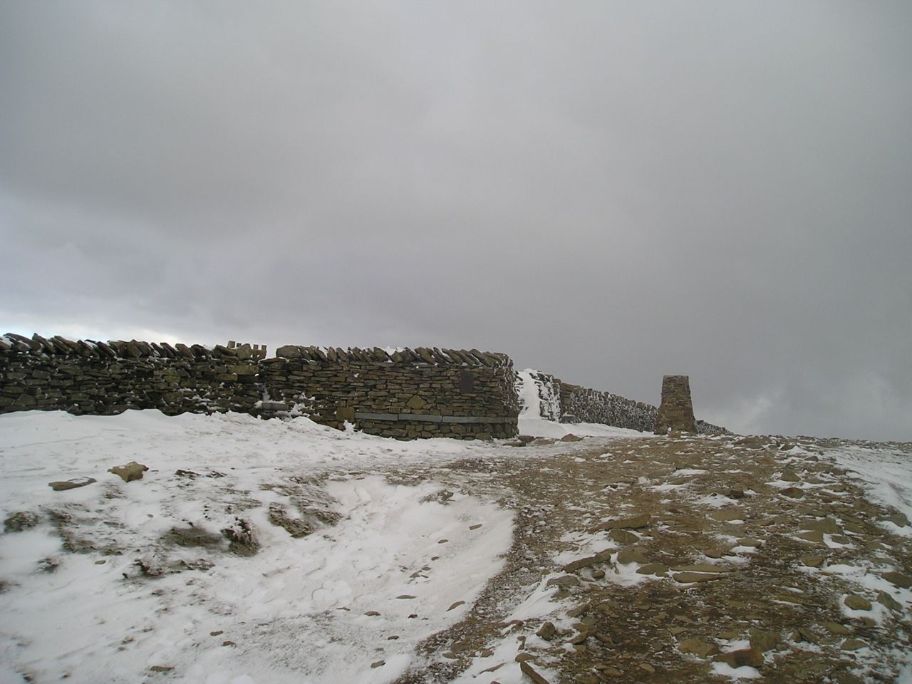 The weather forecast for 10 February suggested that sunny intervals were on the menu – good enough for me, then. To solve the travel logistics of a long linear walk, I took the train from Shipley (where I was living at the time) to Horton – the plan was to walk Route 4 over Pen y Ghent to Ribblehead, then to take the train back home. On the ascent of Pen y Ghent, it looked as though most of the winter snow had gone, but the summit shelter told a different tale.