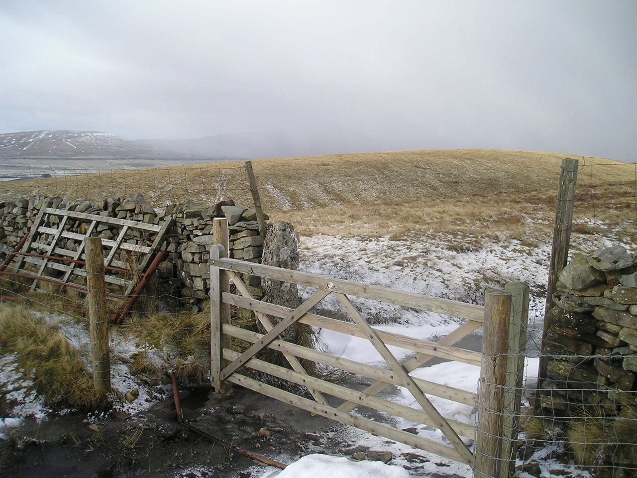 With all on solid ground, I headed down the Pennine Way to Horton Lane (Point A) and followed the faint paths over Whitber Hill. The gate photographed on 14 December was no longer surrounded by water, as the ground was frozen, and at Sell Gill Hill a five-barred gate gave easy access to the nearby Pennine Way coming out of Horton. Although the ground on this section had the potential to be wet, it was far better than the Todber Moss alternative – the ‘Northwest Passage’ had been found!