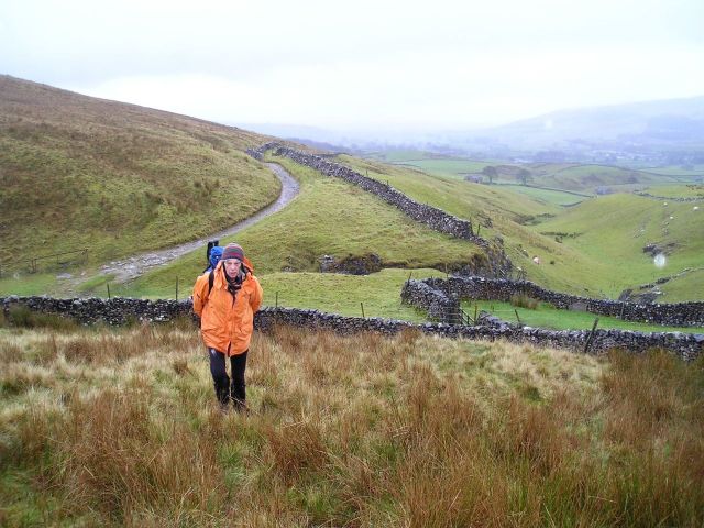 The ground was sodden and we were ‘suckered in’ by a fairly new gate next to the stream of Sell Gill Beck – a faint path by the beck took us down to the lower part of the Pennine Way, which was exactly where we wanted to be. The local farmer obviously had different plans though, as the gate between us and the Pennine Way was chained and locked (it isn’t a Right of Way). We climbed it to head back to Horton, but we couldn’t have potential guidebook readers having to climb locked gates – the search continued.