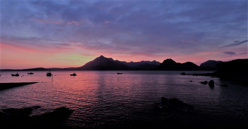 At Ettrick on the Isle of Bute, we had most of the ingredients for a good show – it’s a bonus when there’s a last sighting of the sun as it disappears, but a few moody-looking clouds made a great projection screen for the changing colours. But my all-time favourite for sunsets was the one we saw in 2017 at Elgol – what’s more, those colours are genuine! As the man said, ‘see more sunsets’.
