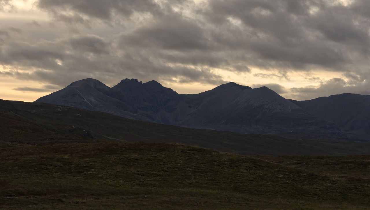 A bit of cloud works wonders in a sunset, giving the light something to play with – however, on the 2020 trip, there was more than enough cloud over An Teallach, and it wasn’t taking any prisoners. It was certainly a good night for viewing the mountains from a distance rather than close up.