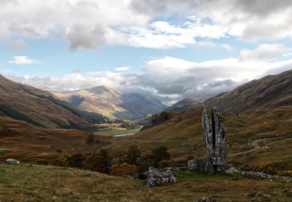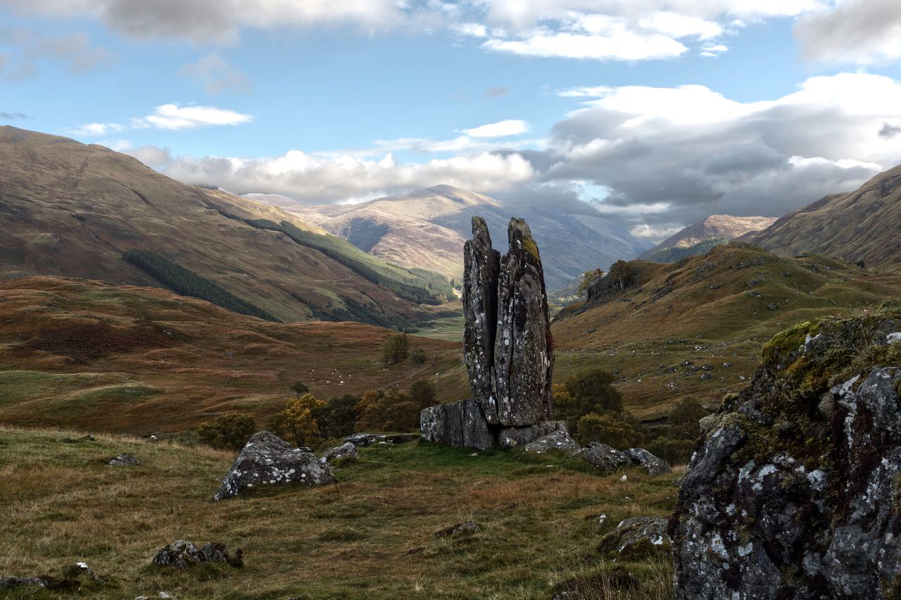 The Scottish historical novelist, Sir Walter Scott, described Glen Lyon as the “longest, loneliest and loveliest glen in Scotland”, yet in all my years of travelling in Scotland I had managed to pass it by. The problem I have with the Scottish Highlands is that there is so much to see and do that I rush on past some real gems. Not this time though – we were going to Glen Lyon to see “The Praying Hands”, otherwise known as “Fionn’s Rock”.