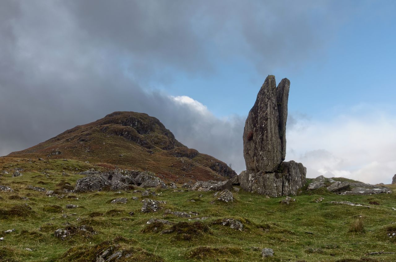 A more likely explanation is that the stones were raised by humans in the Neolithic period, which would make the monument about 5000 years old, but if this is the case their purpose is a complete mystery. There is another explanation of course – legend has it that the stone was split in two by an arrow fired by the legendary Celtic hero Fingal, or Fionn mac Cumhaill (Finn McCool in English). So, glacial erratic, Neolithic monument or one of Scotland’s myths and legends – Take your pick!