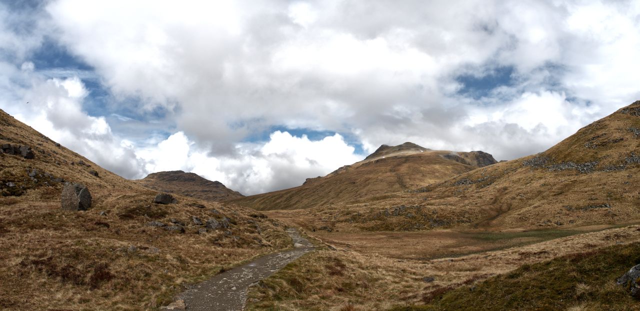 Beinn Ime (left) and Beinn Narnain seen from the steep steps