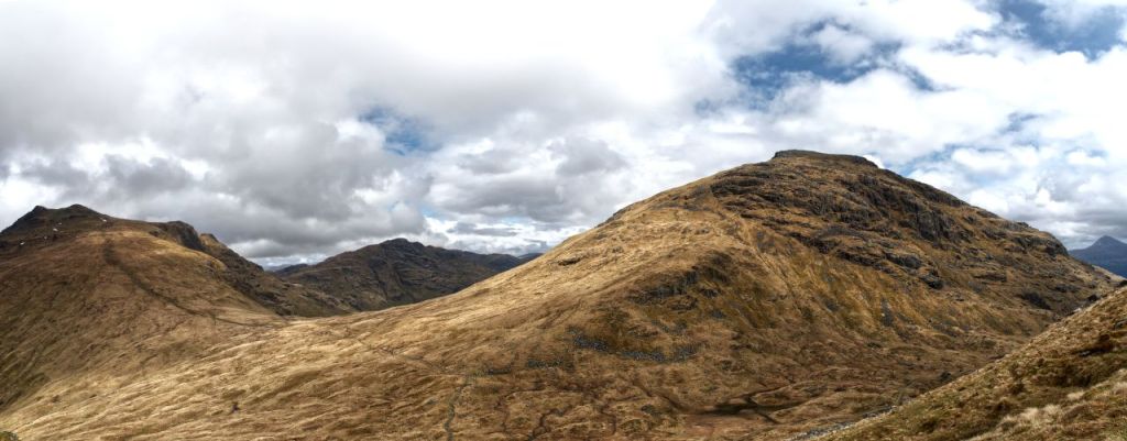 Approaching the Bealach a’ Mhàim with Beinn Ime rising above on the right