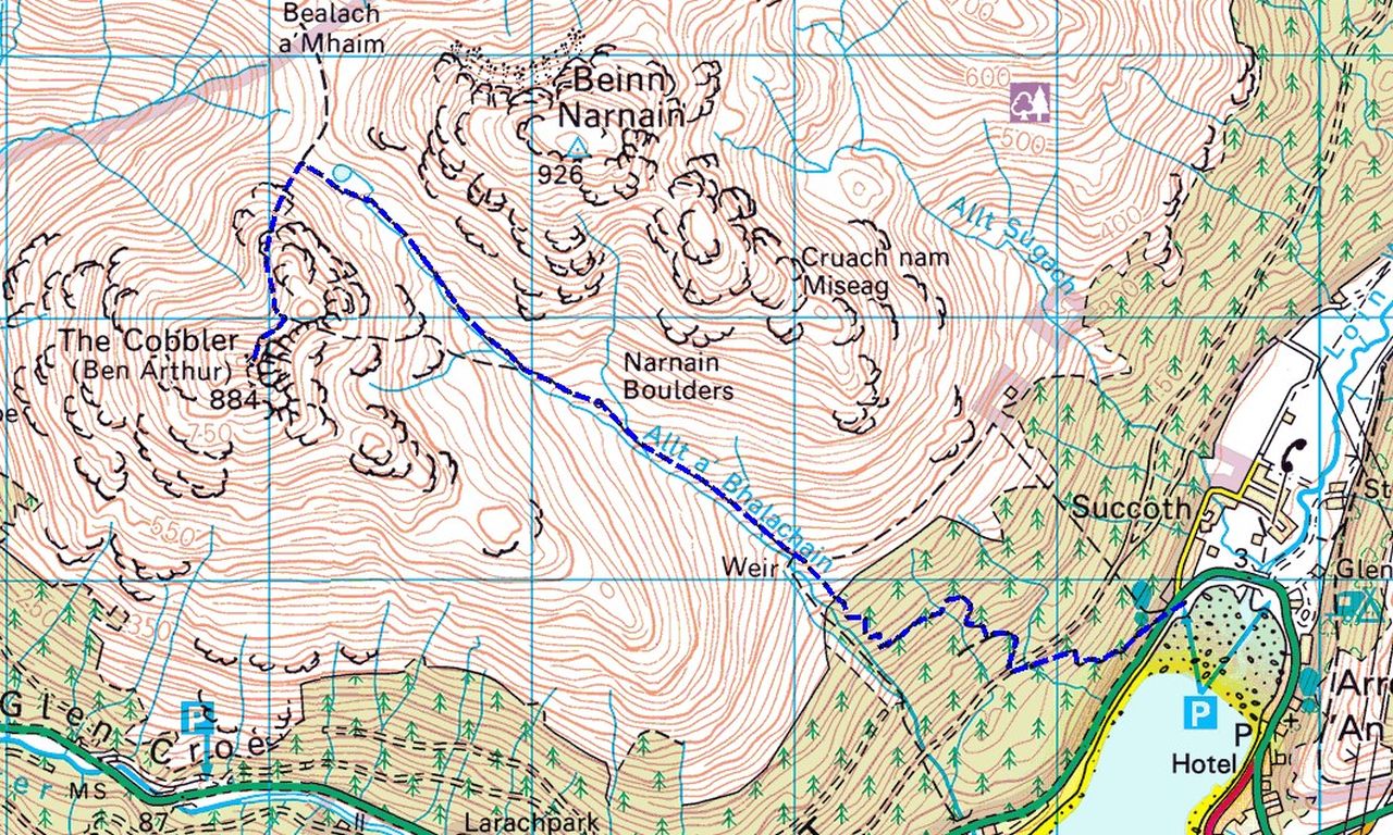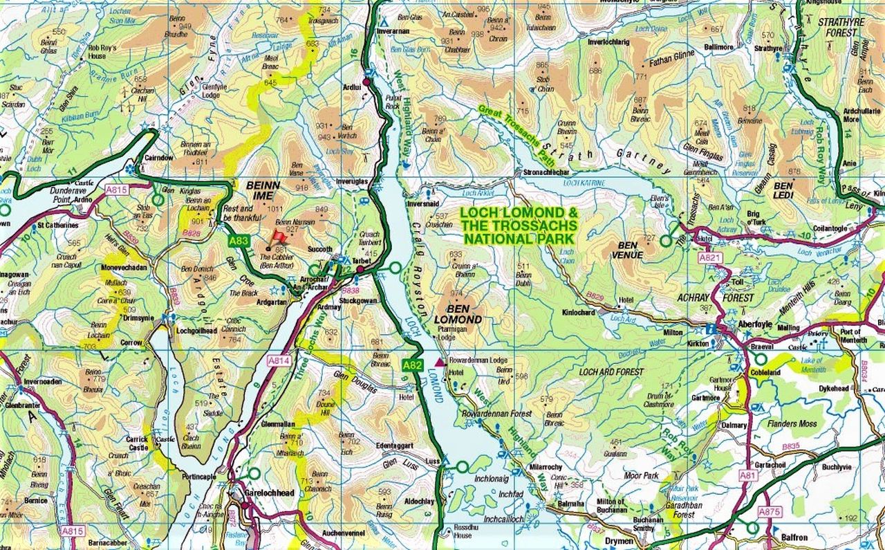 Loch Lomond and The Cobbler (indicated by the red flag)