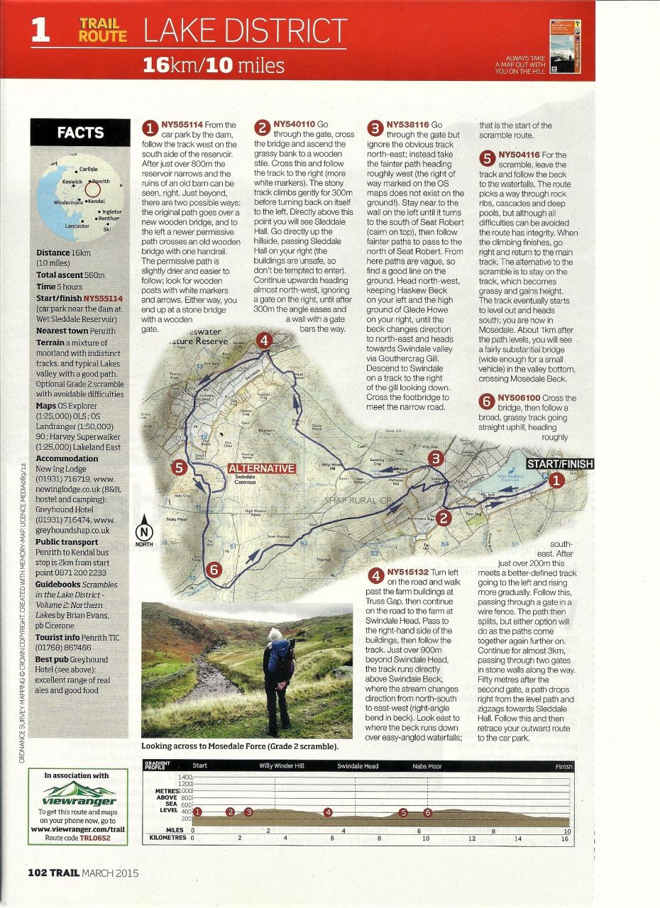 Chris and I have been coming here for years now. There’s a cracking walk over the local hills that links the three valleys of Wet Sleddale, Swindale and Mosedale (see post #51). This route was one of my early contributions to the Walking World website, and later recycled as a Trail Magazine route (see above). A well known feature on the walk is Sleddale Hall, which provided the outdoor location shots for the cult 1987 film ‘Withnail and I’.