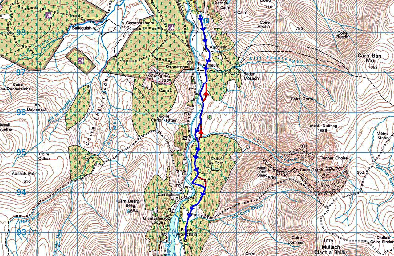 Haven’t been that far down Glen Feshie – only as far as just past the Garbhlach and then up onto the plateau. Always wanted to see (and preferably stay) at that bothy though – it was one of my work passwords – I knew no hacker was going to stumble across that by accident! Not with Gaelic being so complicated in writing.