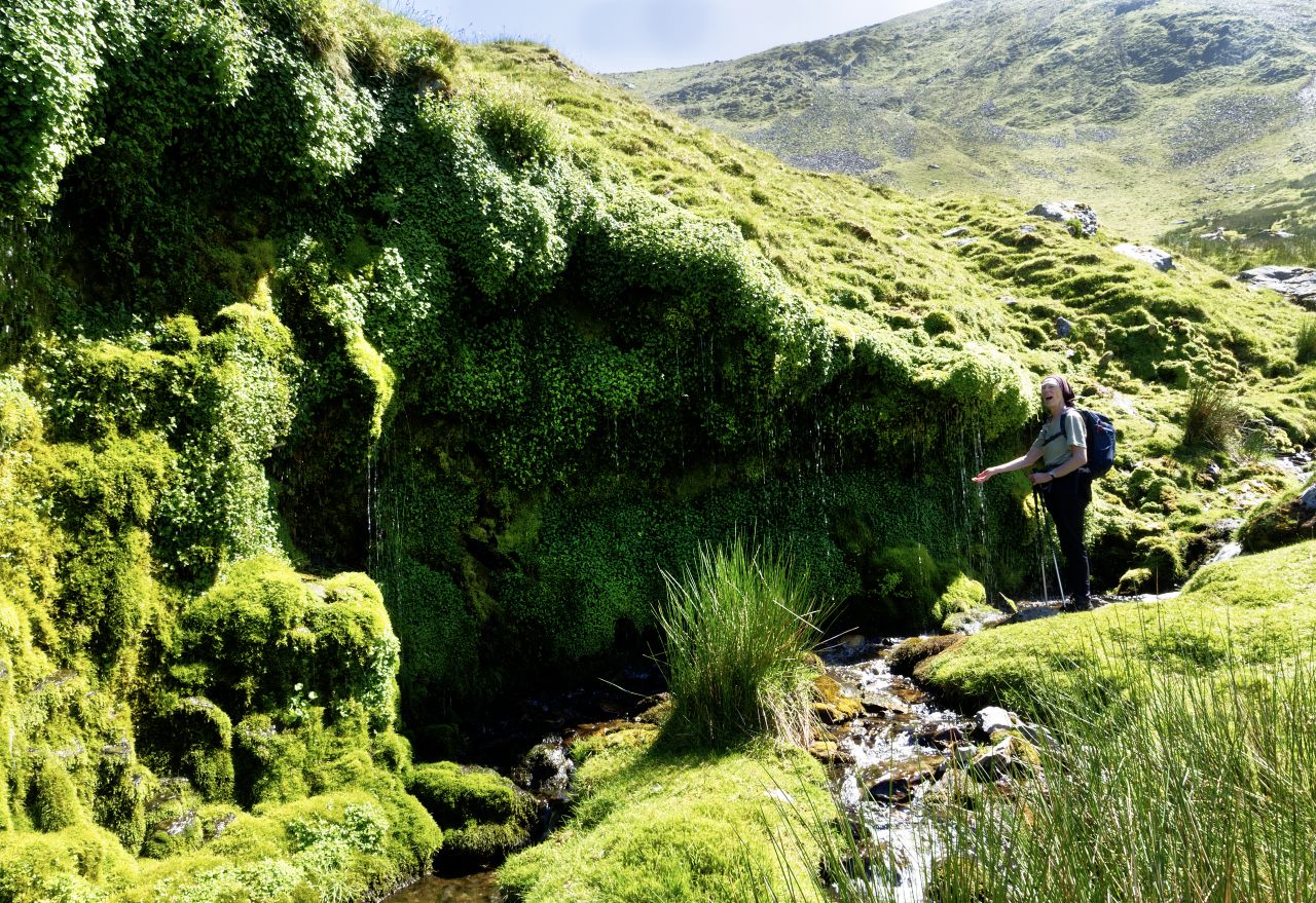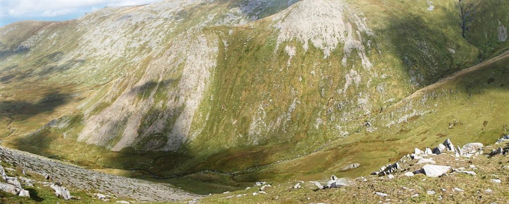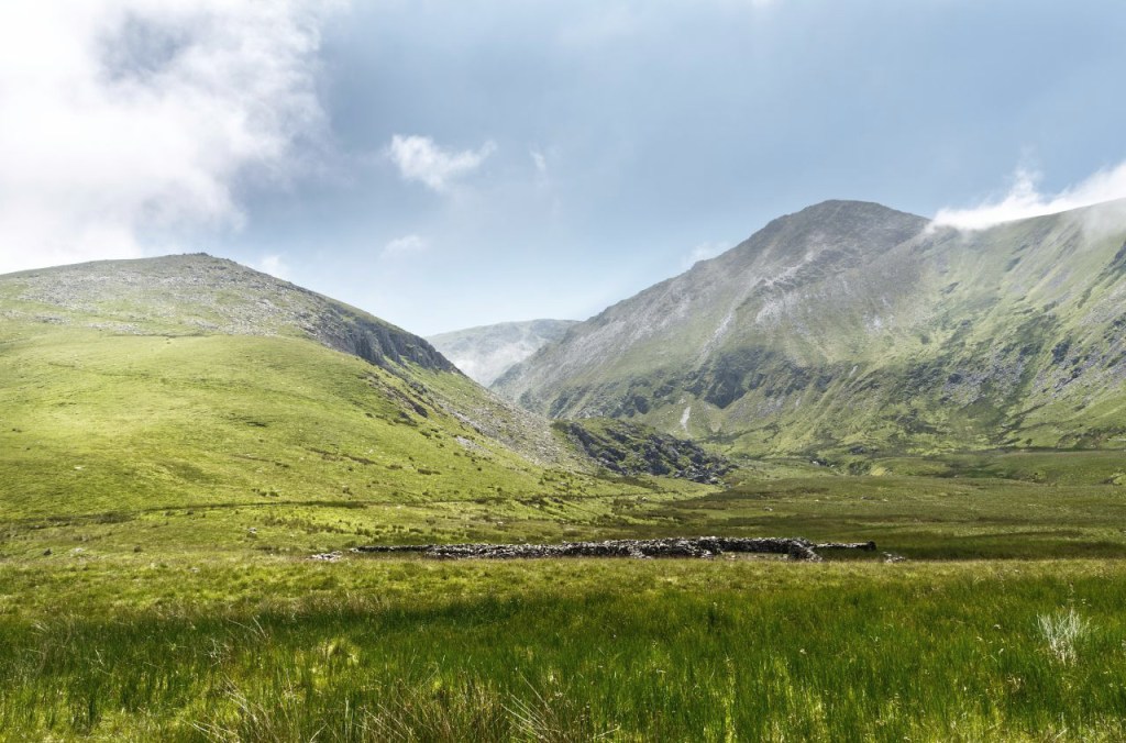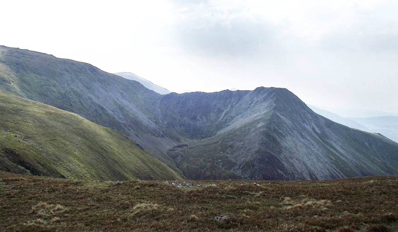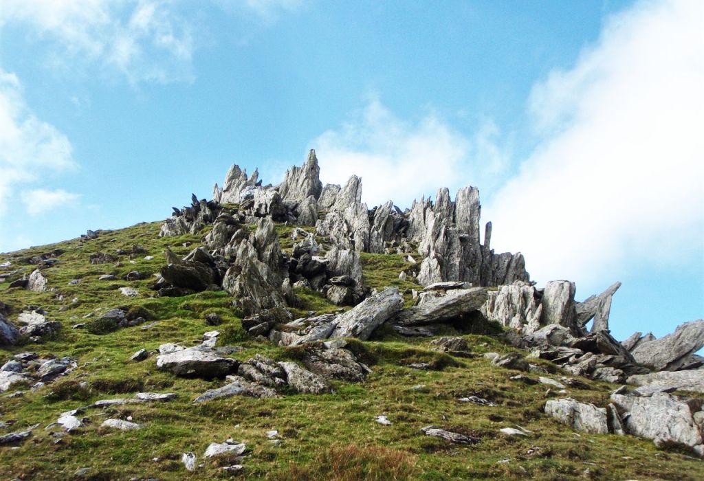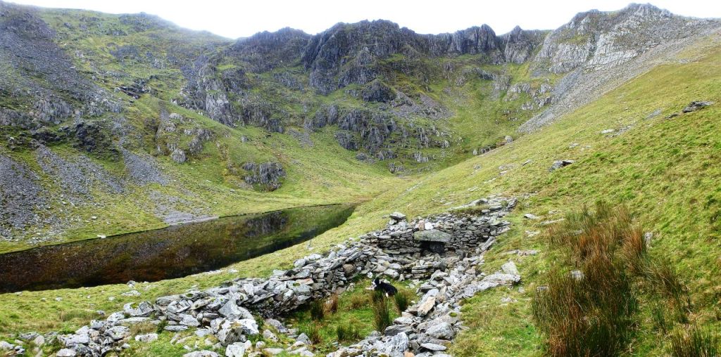 It is said that Ffynnon Caseg is where Carneddau ponies go to give birth to their foals. It is one of the loneliest and quietest places in Wales, with the only sign of human activity being the ruins of a tiny hafod (summer dwelling). Above the lake, the slope heads steeply upwards to gain the crest of the Dragons Teeth Ridge – once on the crest of the ridge, the drop on the other side of the ridge suddenly becomes obvious.
