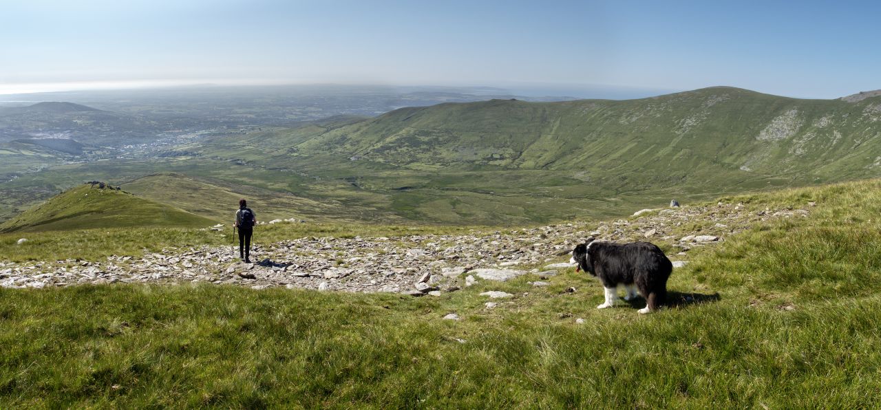 The way down was steady and a complete contrast to the drama of the Dragons’ Teeth. A faint path crosses Foel Ganol (‘Bare Hill in the Middle’) and a lower un-named peak, before heading down to a crossing of the Afon Caseg to get back to the outward path. Stream crossings can have their moments, but the water level on this occasion was low. I spent a couple of minutes looking for an easy crossing point for ‘Mist’, and having done so I looked across the stream to see the old dog already across and grinning back at me – she has a few more miles in her yet!