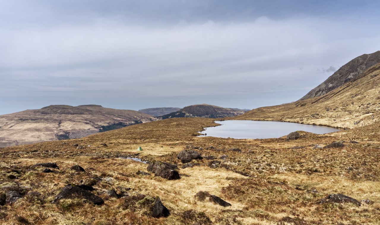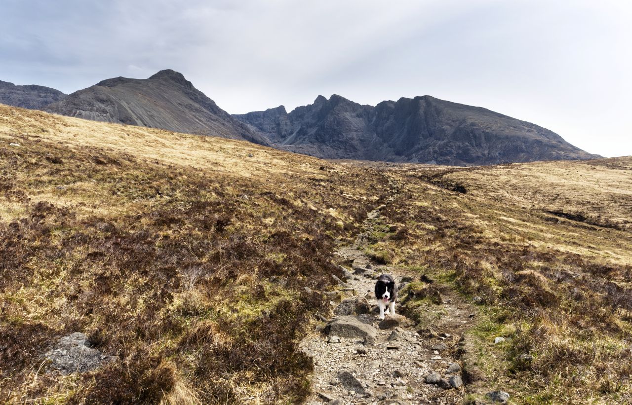 The new campervan made a comfortable base for the trip, and the old dog was up for a mountain day, despite her age and a touch of rheumatism. The problem with Border Collies is that they will try to do whatever you ask of them, and I wasn’t about to ask ‘Mist’ to do a return trip to the high corrie. Instead, we headed out towards the massive, complex cliffs of Sron na Ciche, to a place I knew from my early climbing and mountaineering days.