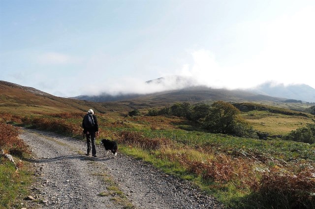 Suileag is a popular bothy with hikers, cyclists and mountaineers, but during the Covid-19 emergency, all bothies maintained by the Mountain Bothies Association have been placed off-limits. So, after a quick peek inside for a couple of photos, we turned round for the return to the car park near Glencanisp Lodge. Suilven was just as impressive on the way back as it had been on the way out to the bothy, but ‘Mist’ was much more impressed by the sound of her dinner dish being topped up when we arrived back at the van.