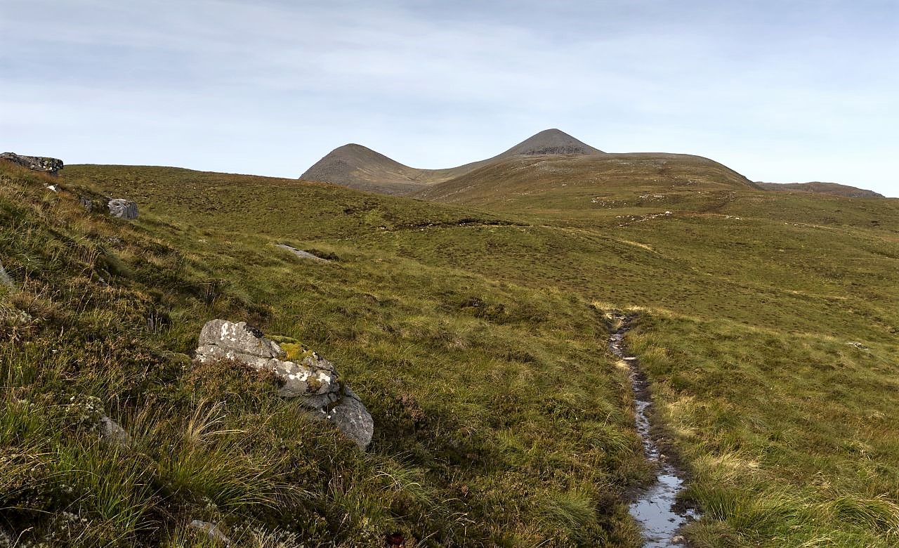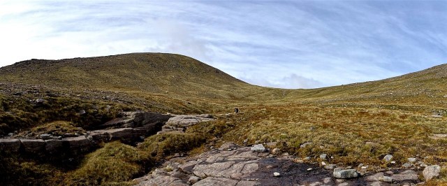 The approach to Suileag bothy, seen in the shadows just left of centre