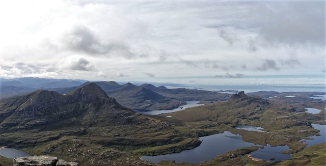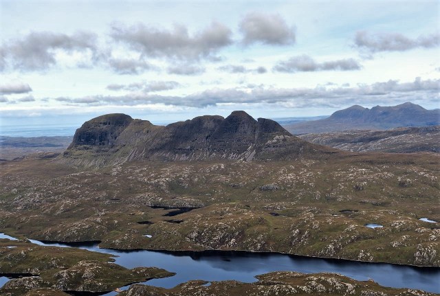 The mountains of Assynt – left to right Canisp, Suilven, Cul Mor, Cul Beag and Stac Pollaidh