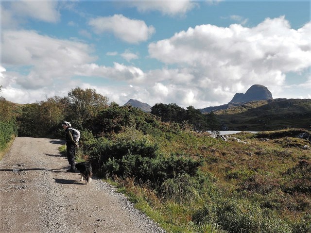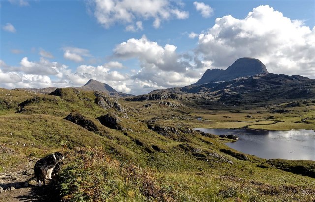 Canisp (left) and Suilven (right) – plus a certain Border Collie!