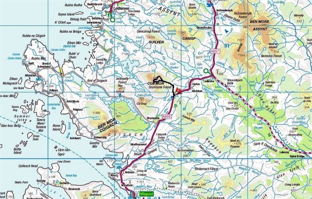 After our East Cairngorm outings (see posts #286 and #287) I had tried my hand at wildlife photography at Chanonry Point on the East Coast, but it was a ‘no show’ by the dolphins on the two mornings I tried for a photo. ‘Mist’ had enjoyed the extended dog-walks on the beach, but the West Coast was calling, so it was time to take the A837 road through Strath Oykel to Assynt.