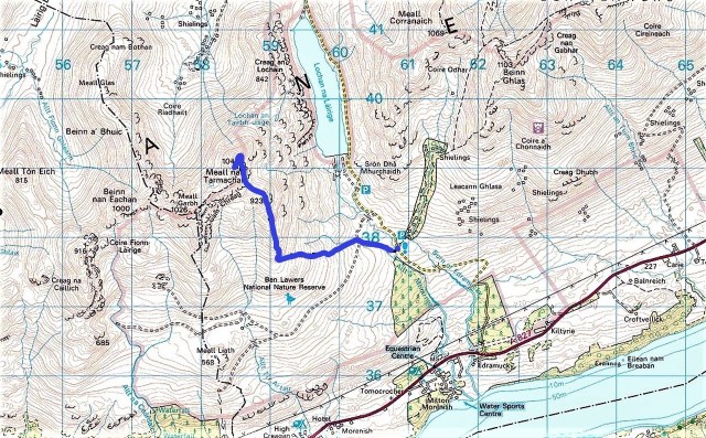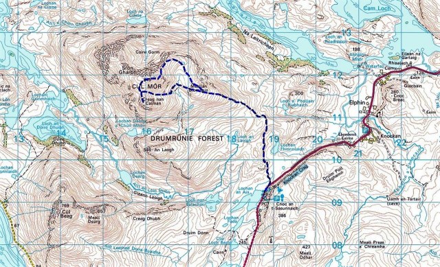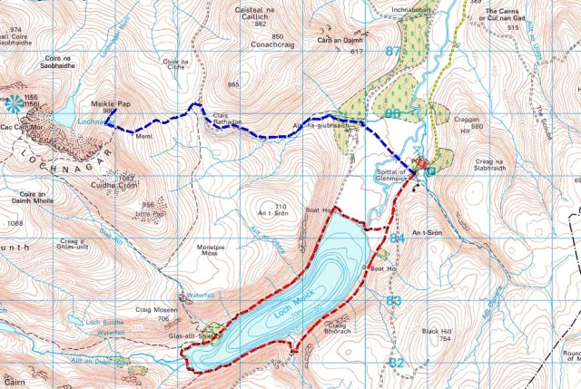 Loch nan Cuaran – as far as we went (route shown in blue on the map above)