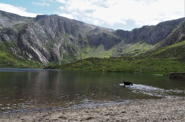 The wheel consists of two gondolas, each containing 300 tonnes of water, meaning that the wheel moves 600 tonnes on each lift, but as the gondolas balance each other, the wheel can raise or lower the boats using just 1.5 kWh of energy, no more than it would take to boil the water in eight domestic kettles. After watching a couple of canal boats making the transfer, it was time to give Border Collie ‘Mist’ a run – near to the Wheel is one of the best-preserved sections of the Antonine Wall, built by the Romans nearly 2000 years ago, and the engineering feat of its time.