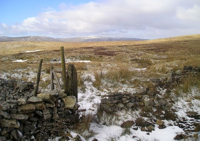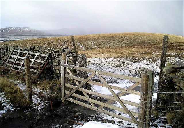 With all on solid ground, I headed down the Pennine Way to Horton Lane (Point A) and followed the faint paths over Whitber Hill. The gate photographed on 14 December was no longer surrounded by water, as the ground was frozen, and at Sell Gill Hill a five-barred gate gave easy access to the nearby Pennine Way coming out of Horton. Although the ground on this section had the potential to be wet, it was far better than the Todber Moss alternative – the ‘Northwest Passage’ had been found!