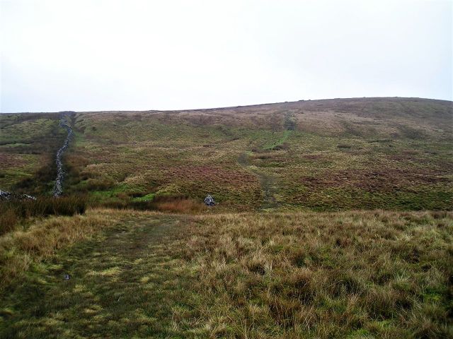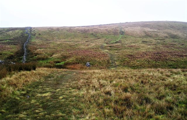 There was a better way, at least there was on the map. It started with a direct descent on the Pennine Way route, heading for Horton Lane (shown as A on the map above). From there, the map showed a couple of paths heading over Whitber Hill. These were not Rights of Way as such, but since the introduction of the Countryside and Rights of Way Act of 2000, Whitber Hill was on ‘access land’ and could be crossed without committing trespass. The trouble was, the start to the possible link looked unpromising, to say the least (see photo above).