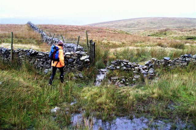 In late January, John and I set out on yet another foray to find an alternative to crossing Todber Moss. We tried a different way down to Sell Gill Holes, but the route was far from straightforward to follow and had yet another padlocked gate. Still, that eliminated another dead-end. A misty day didn’t produce many useful photos, but I spotted a possible link joining the Pennine Way near to Sell Gill Hill, which looked promising for my next attempt.