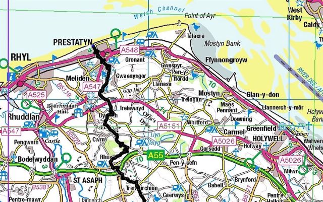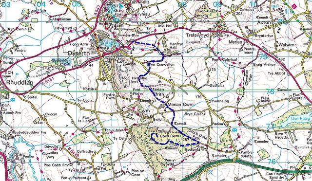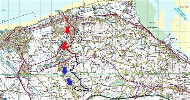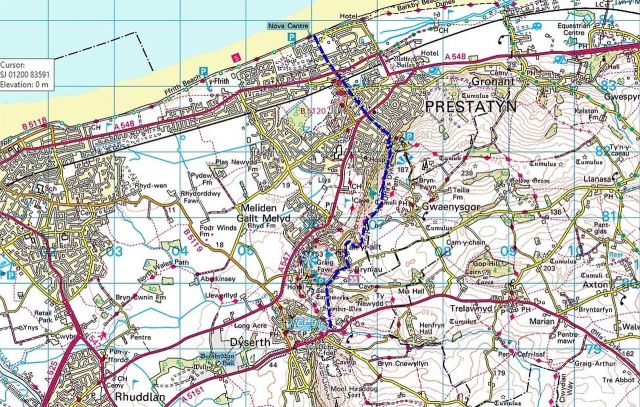 Closer view of Route 4 – the old route variation shown in red, current route in blue